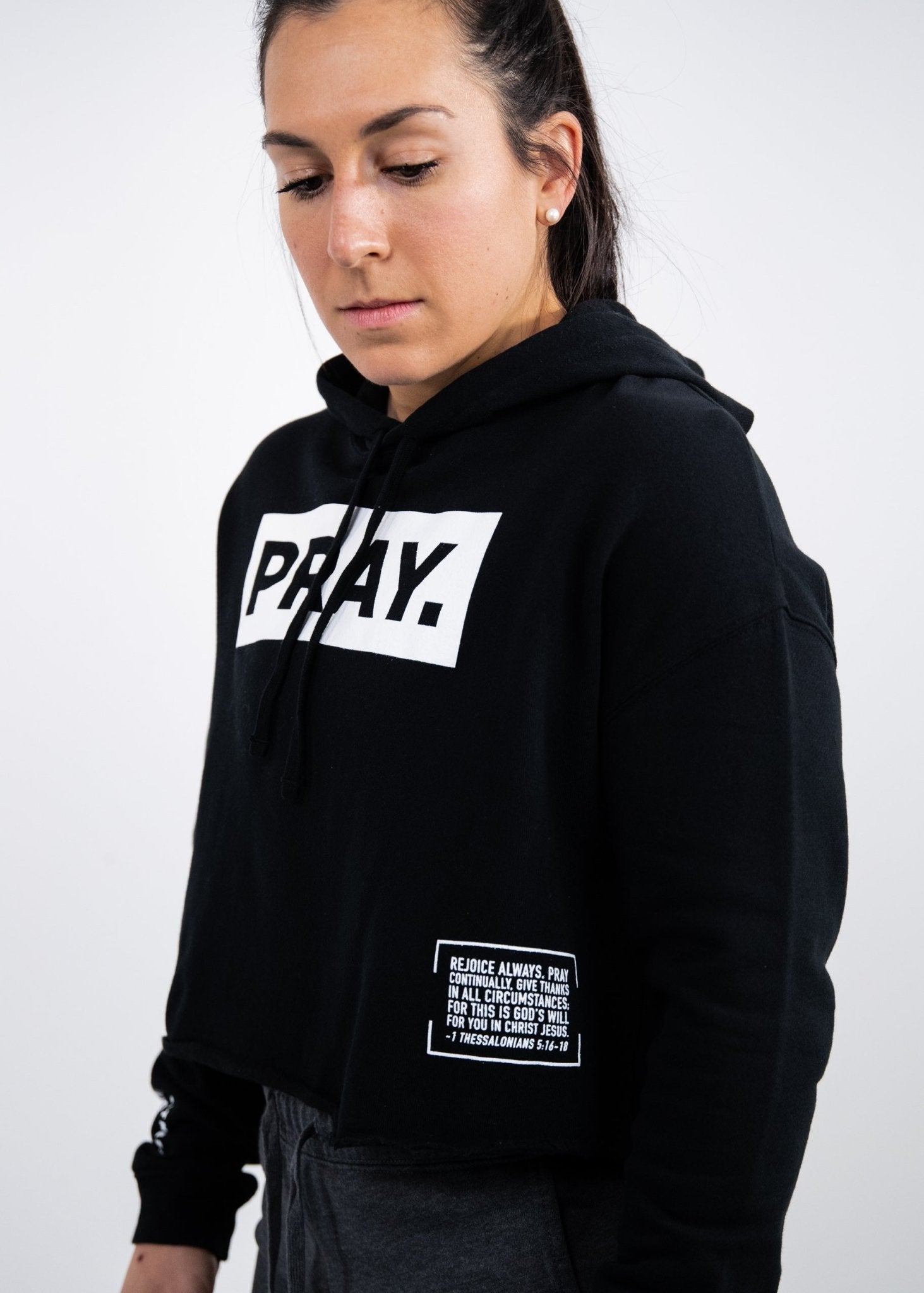 PRAY. Crop Hoodie: Black