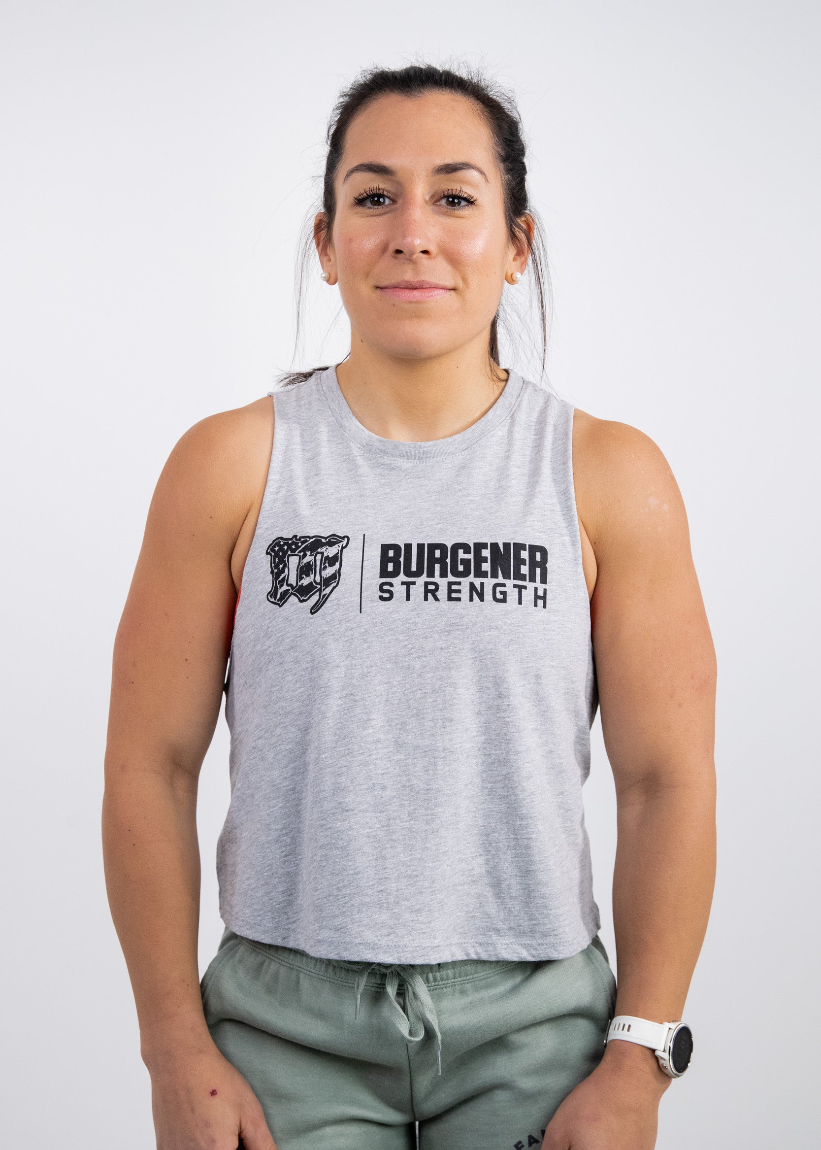 Mayhem Burgener Strength Crop Tank: Grey